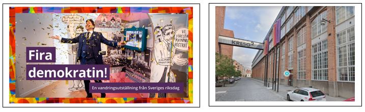 Vi får en visning av utställningen ”FIRA DEMOKRATIN – FOLKRÖRELSER, RÖSTRÄTT, KAMP”.